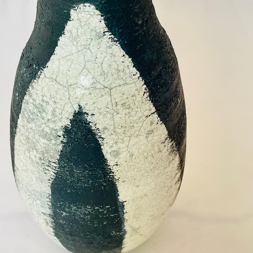 Raw clay with Raku glaze vessel by Los Angeles based ceramicist Debra Levin.